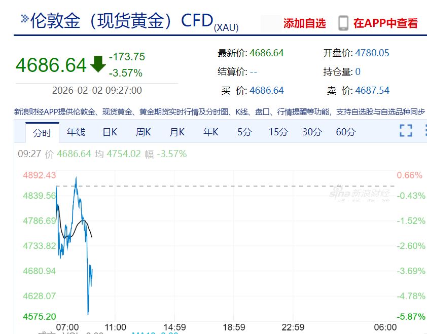 2月2日早盘,黄金、白银集体低开,现货白银一度大跌近8%,随后开始反弹,现货黄金一度重返4800美元,现货白银日内涨幅一度扩大至近4%。