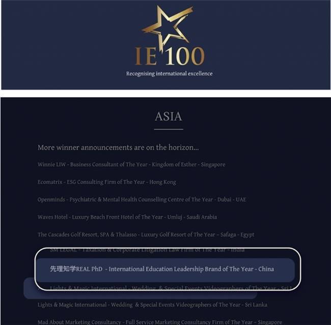 近日毅鸣天汇,国际知名奖项International Elite 100 Awards正式公布“International Education Leadership Brand of the Year-China”(年度国际教育领军品牌)获奖结果。先理知学REAL PhD凭借其在海外博士申请领域的持续深耕与体系化服务,成功入选该榜单。此次获奖不仅是品牌国际化发展的阶段性成果,也折射出其在国际教育专业服务领域逐渐形成的口碑影响力。